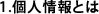 個人情報とは、氏名、年齢、性別、住所、電話番号、メールアドレスなど、お客様個人を特定するに足りる全ての情報のことを意味します。個人情報には、他の情報と照合することができ、それにより特定の個人を識別することができることとなるものも含まれます。