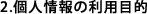 2.個人情報保護体制について一定の基準に達していると認める専門業者に対し、個人情報の取り扱いを委託する場合があります。