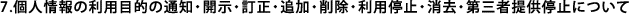 1.お客様は、ご自身の個人情報に関し、本サイトに対し、利用目的の通知・情報開示・訂正・追加・削除・利用停止・消 去・第三者提供停止の請求をすることができます。