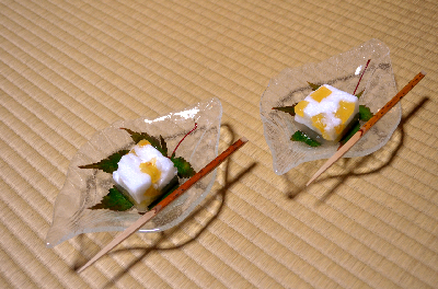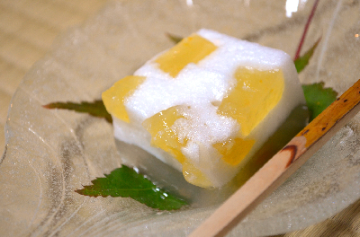 家元のお手製である寒天、卵白と梨を固めた和菓子、美味しゅうございました。