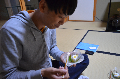 小一時間経ったころだろうか、家元から「せっかくだから和菓子食べてみる?」。その言葉にうなづく以外の選択肢はなかった。